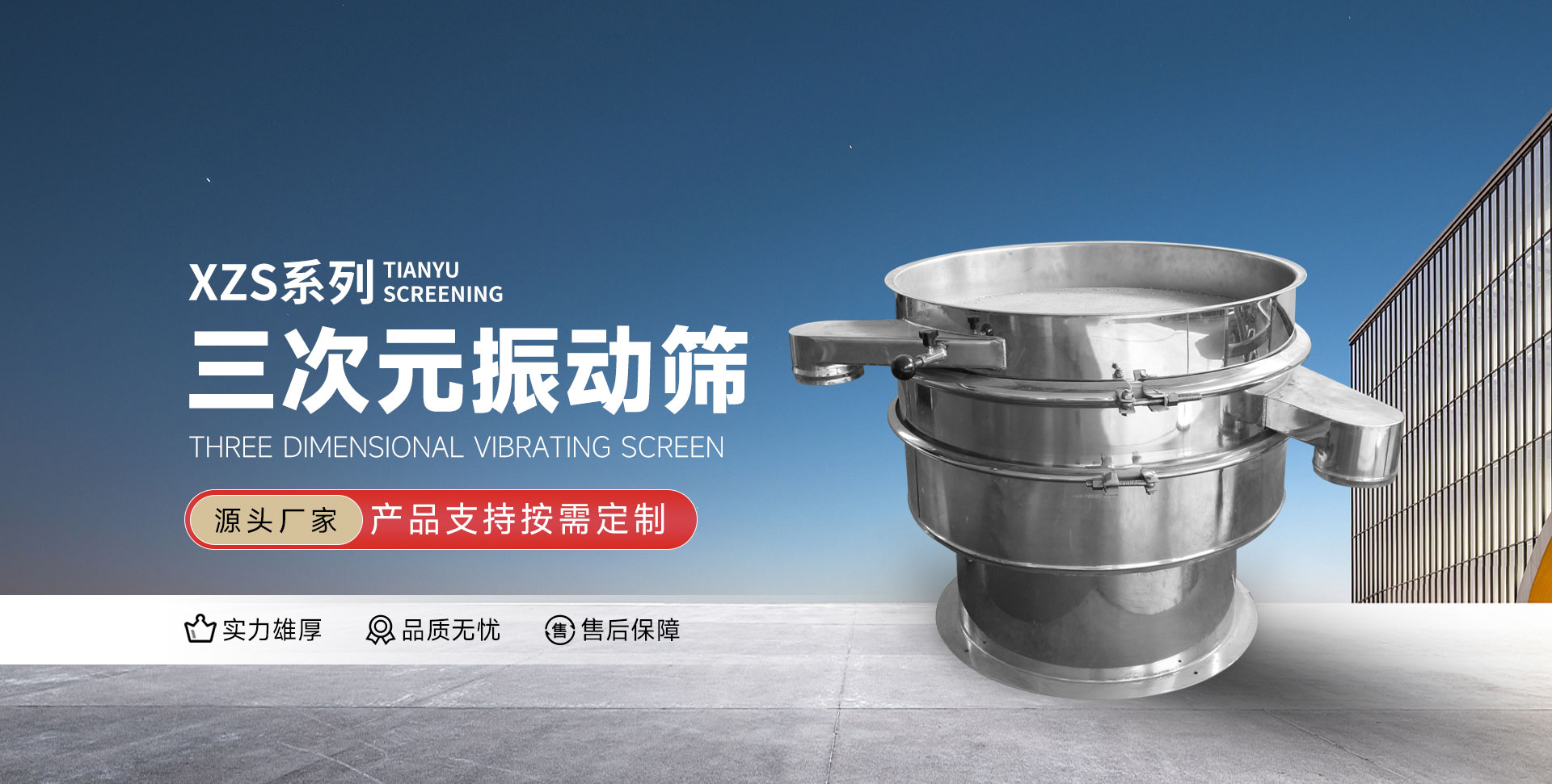 一條龍的特色。公司連續(xù)多年走產(chǎn)、學(xué)、研、相結(jié)合的道路,長(zhǎng)期與大專(zhuān)院校進(jìn)行技術(shù)交流與合作以此為后盾,自行開(kāi)發(fā)和研制的十余種新產(chǎn)品,經(jīng)有關(guān)鑒定,均達(dá)到了標(biāo)準(zhǔn)。 公司擁有各類(lèi)先進(jìn)的機(jī)加、設(shè)計(jì)、檢測(cè)設(shè)備,建有振動(dòng)仿真實(shí)驗(yàn)場(chǎng)和振動(dòng)設(shè)備檢測(cè)系統(tǒng)。對(duì)公司研究、設(shè)計(jì)、生產(chǎn)的各類(lèi)振動(dòng)設(shè)備進(jìn)行物理和機(jī)械性能測(cè)試。對(duì)各部位進(jìn)行應(yīng)力、應(yīng)變、剛強(qiáng)度等力學(xué)參數(shù)進(jìn)行測(cè)試;對(duì)振幅、振頻、振型及其軌跡進(jìn)行測(cè)試描述。公司力求用數(shù)據(jù)來(lái)指導(dǎo)設(shè)備的科研、開(kāi)發(fā)、生產(chǎn),使用戶無(wú)后顧之憂。 您好!歡迎訪問(wèn)新鄉(xiāng)市天宇篩分機(jī)械制造有限公司。制造振動(dòng)篩、震動(dòng)篩、氣旋篩、振動(dòng)篩、氣流篩、系列直線篩、礦篩、超聲波旋振篩、直排振動(dòng)篩、斗式提升機(jī)、螺旋給料機(jī)、振動(dòng)給料機(jī)、皮帶輸送機(jī)等振動(dòng)篩分設(shè)備、輸送設(shè)備、實(shí)驗(yàn)設(shè)備、過(guò)濾設(shè)備、粉碎設(shè)備、振動(dòng)設(shè)備,產(chǎn)品廣泛應(yīng)用于:化工、食品、醫(yī)藥、冶金、陶瓷等行業(yè)。設(shè)備先進(jìn),技術(shù)力量雄厚,吸收國(guó)內(nèi)外眾多廠家的先進(jìn)技術(shù)的同時(shí)又開(kāi)發(fā)和研制出結(jié)構(gòu)新穎,制作精細(xì),如果你對(duì)我公司產(chǎn)品有什么意見(jiàn)請(qǐng)來(lái)電咨詢,Tel:0373-7327555